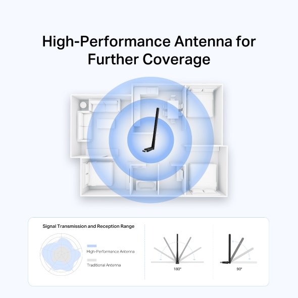 Nastavitelná vícesměrová anténa zajišťuje silnější příjem a větší dosah signálu. Díky tomu je možné využívat adaptér i ve větších místnostech nebo kancelářích.