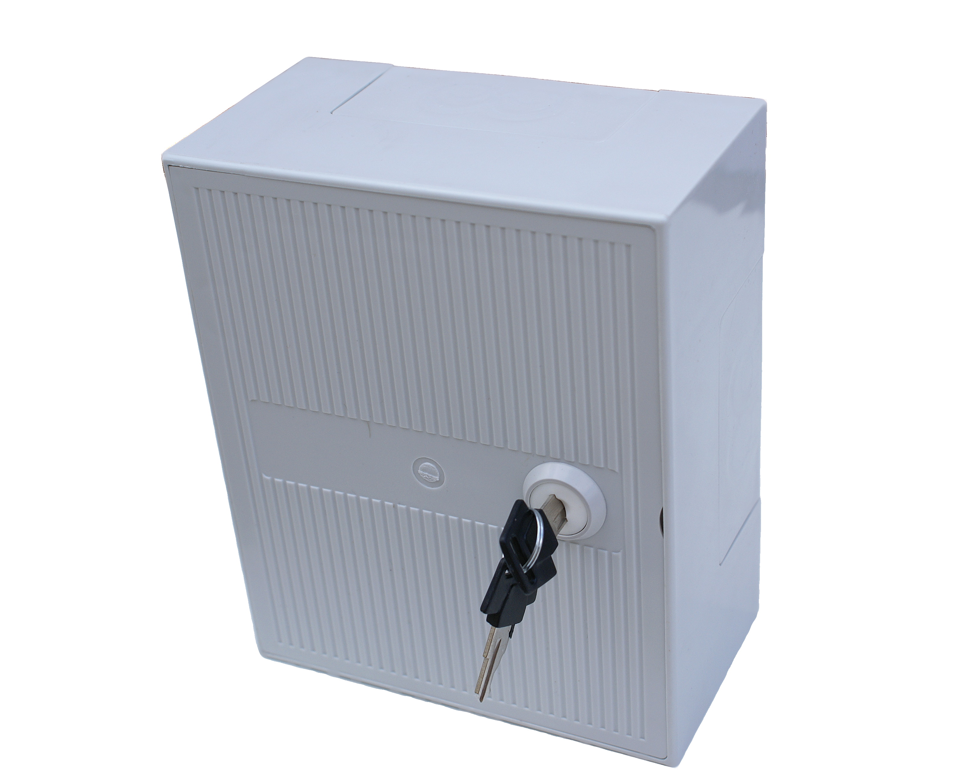 Rozvodný box plastový pro 3 svorkovnice typu Krone včetně držáku a zámku. Možná instalace i do zdi.(š x v x h - 140mm x 170mm x 75mm) Pokud se použije zvyšovací rámeček pro instalaci Magazínu (bleskojistek), hloubka je 101mm