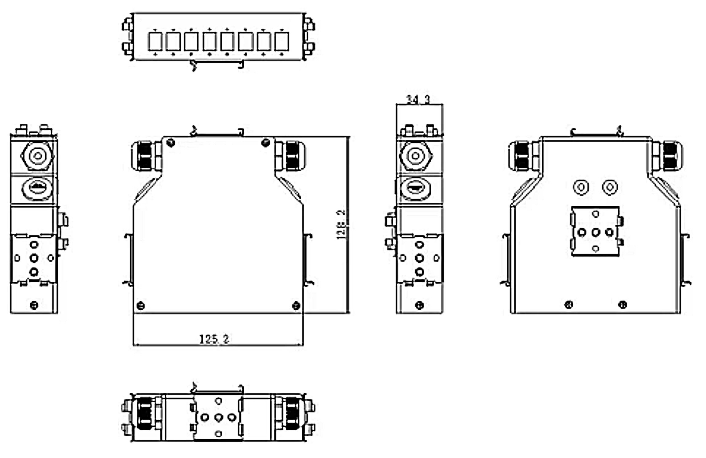 Zakončení optických kabelů na DIN lištu 8 portů (SC/ LC Duplex/ E2000) Vybavený (průchodky, hřebínky na sváry)