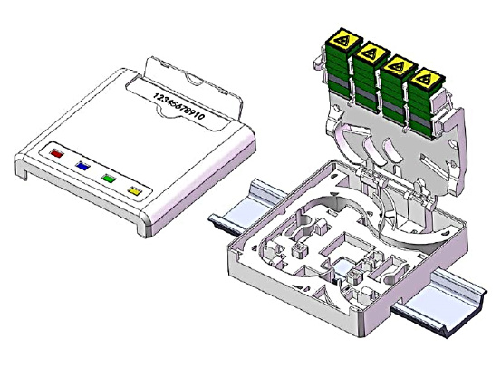Plastová zásuvka (PC+ABS) na DIN lištu otvory pro 4x SC Simplex (LC Duplex, E2000 simplex)