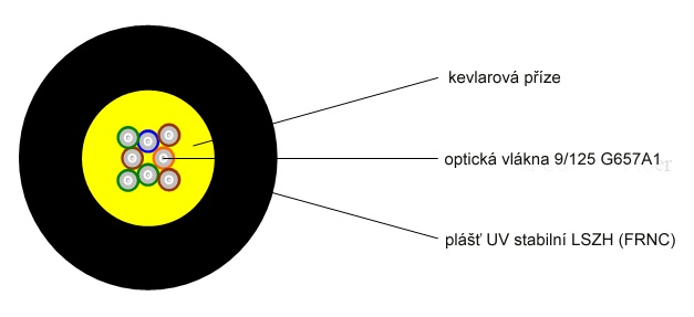 Plášť: FRNC (LSZH), voděodolný, UV resistant