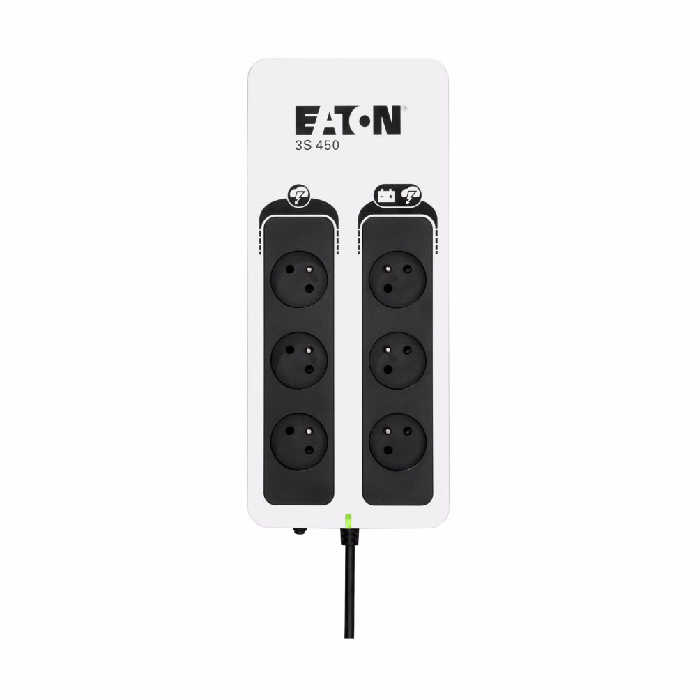UPS Eaton 3S pomáhá chránit vaši výpočetní techniku v případě výskytu nežádoucích jevů a událostí, jako jsou atmosférické výboje, bouřky, přetížení rozvodné sítě, poruchy a živelné události, způsobující bez předchozího varování výpadky napájení z elektrorozvodné sítě. Při úplném výpadku poskytuje UPS záložní napájení z baterie až třem z šesti připojitelných zařízení. Díky atraktivnímu designu a líbivé povrchové úpravě UPS 3S dokonale zapadne do moderního kancelářského prostředí.