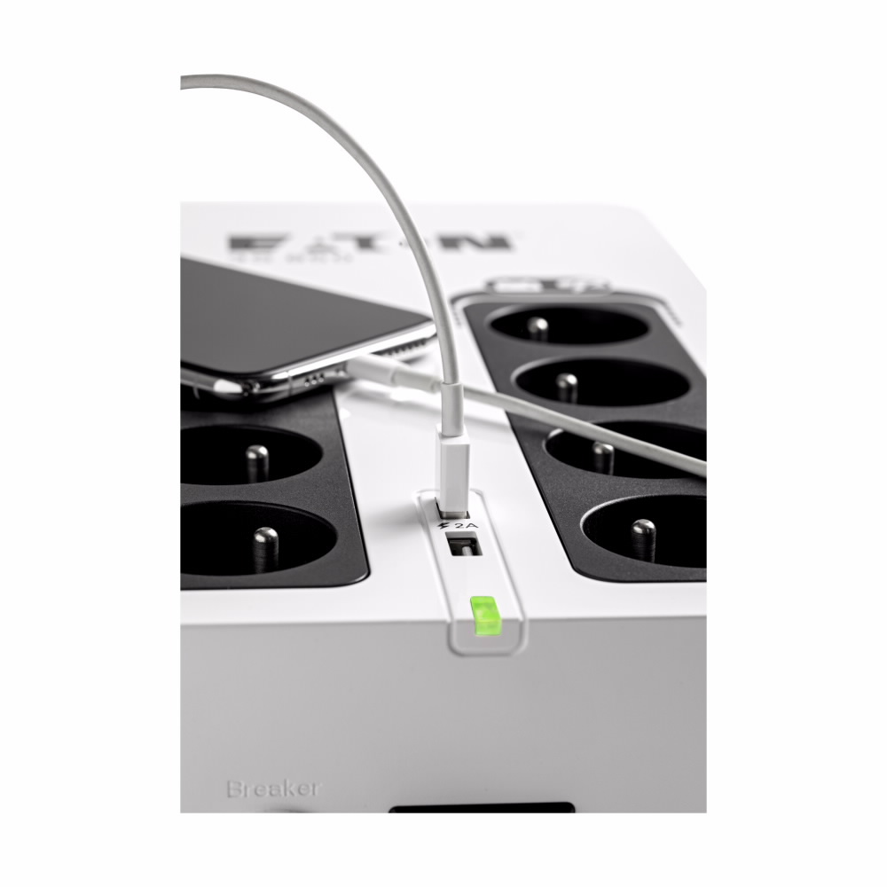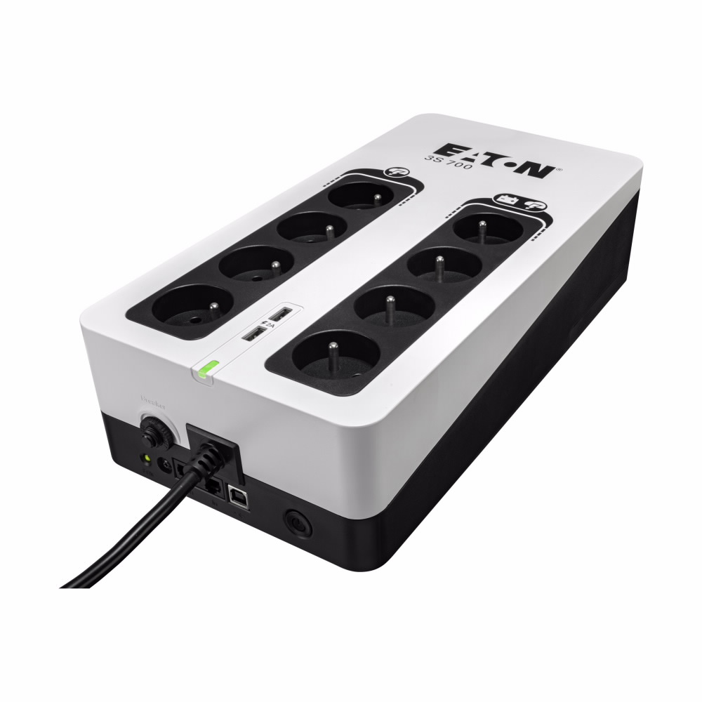 EATON UPS 3S 700 FR, Off-line, Tower, 700VA/420W, výstup 8x FR (CZ), USB, RJ11, 2x USB nabíjení (2A max), bez vent.