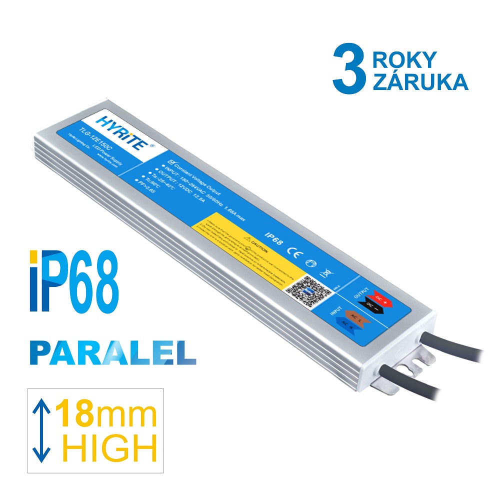HYRITE napájecí zdroj TLG-12E150C, 12V 12,5A 150W pro LED, IP68, výška 18mm