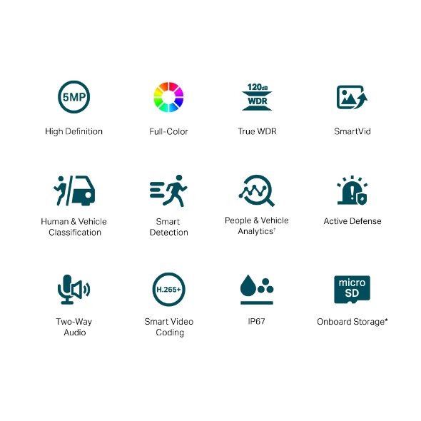 Venkovní IP kamera, plnobarevné noční vidění, max. rozlišení 5 MP, chytrý infračervený přísvit, široký dynamický rozsah WDR, 3D digitální redukce šumu 3D DNR, chytrá detekce pohybu a překročení hranice, voděodolnost, správa s aplikací VIGI.