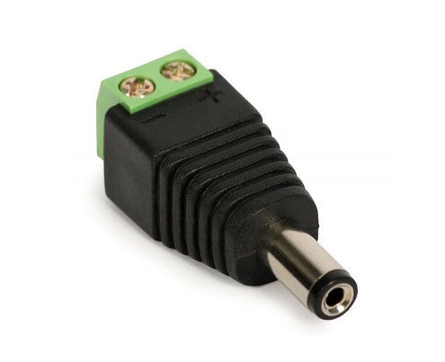 Napájecí konektor se svorkovnicí pro kameru, napájecí koncovka kamery pro 12V a 24V DC, vstup do kamery z kabelových rozvodů, značená polarita. Rozměr: 5.5*2.1mm