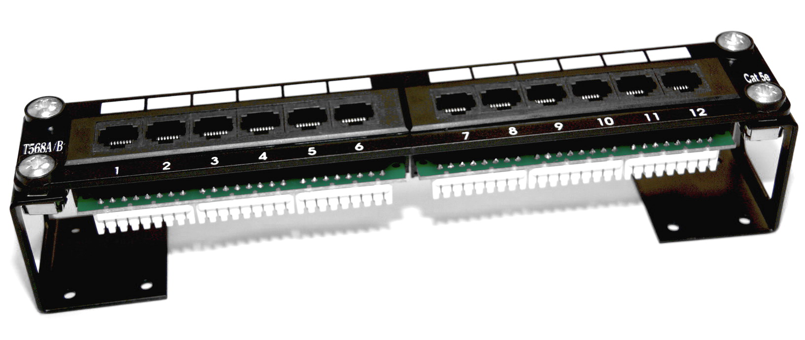 Patch panel 12 port CAT5e UTP pro 10" rozvaděče zářezové svorkovnice typu "DUAL" plřípadně s držákem možná montáž na zeď či atypického rozvaděče