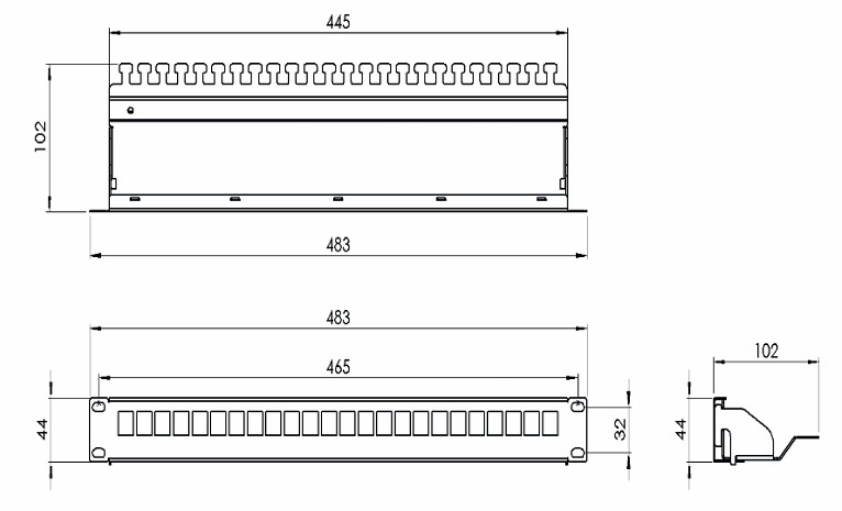rozměr: 483 x 44 x 102 mm