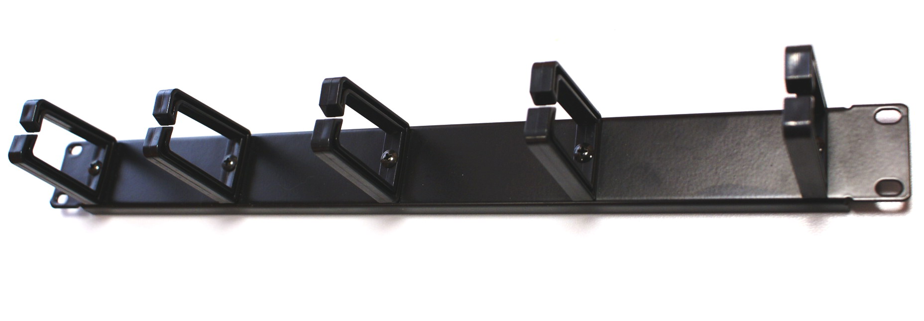 19"vyvazovací panel 1U 5x plastová úchytka 60x40mm -  černý