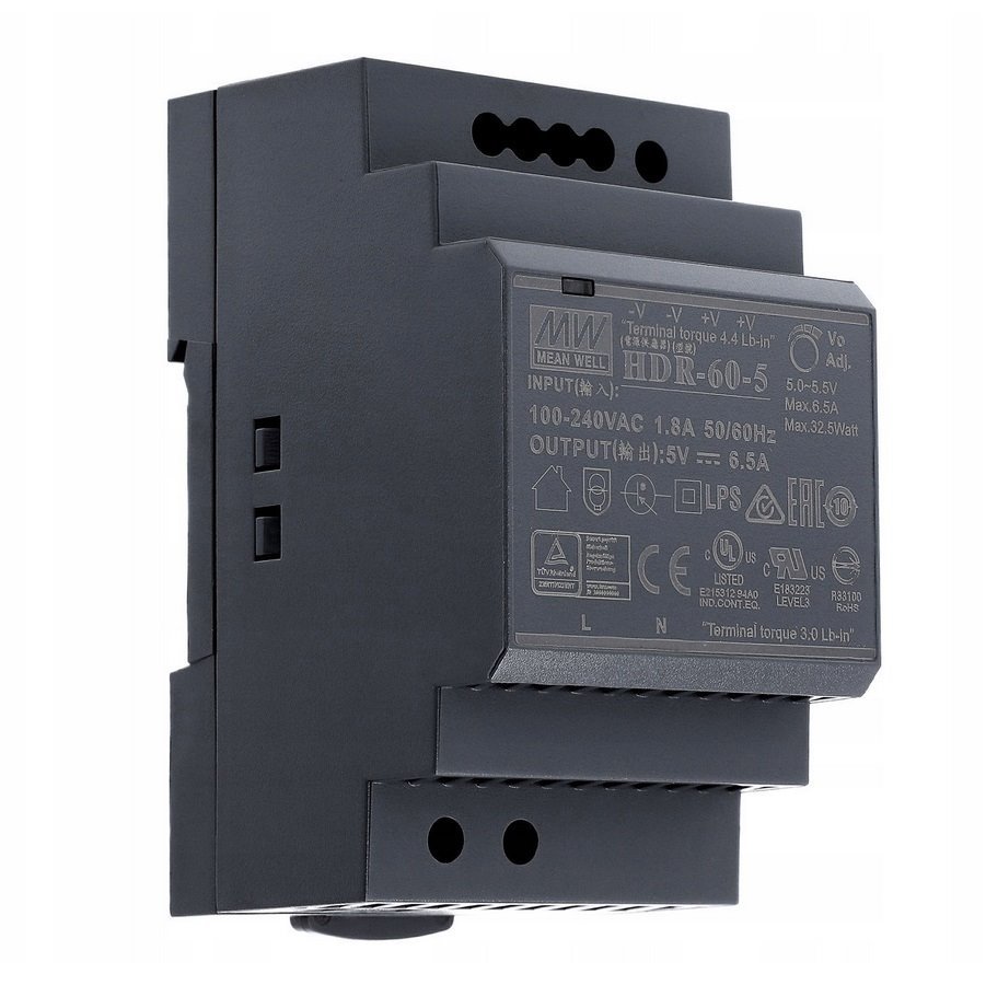 MEAN WELL HDR-60-5 Průmyslový napájecí spínaný zdroj 5V 32,5W na DIN
