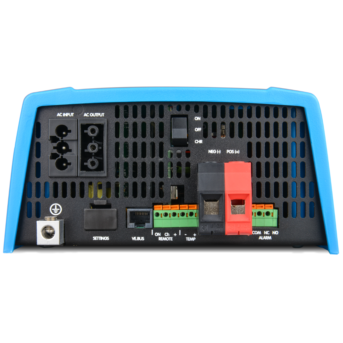 Multifunkční měnič/nabíječka; Multiplus je multifunkční výkonný DC-AC měnič s čistě sinusovým výstupním napětím, se sofistikovanou adaptivní nabíječkou baterie a ultra rychlým transferovým přepínačem napájení (mezi napájením z baterie/ externího