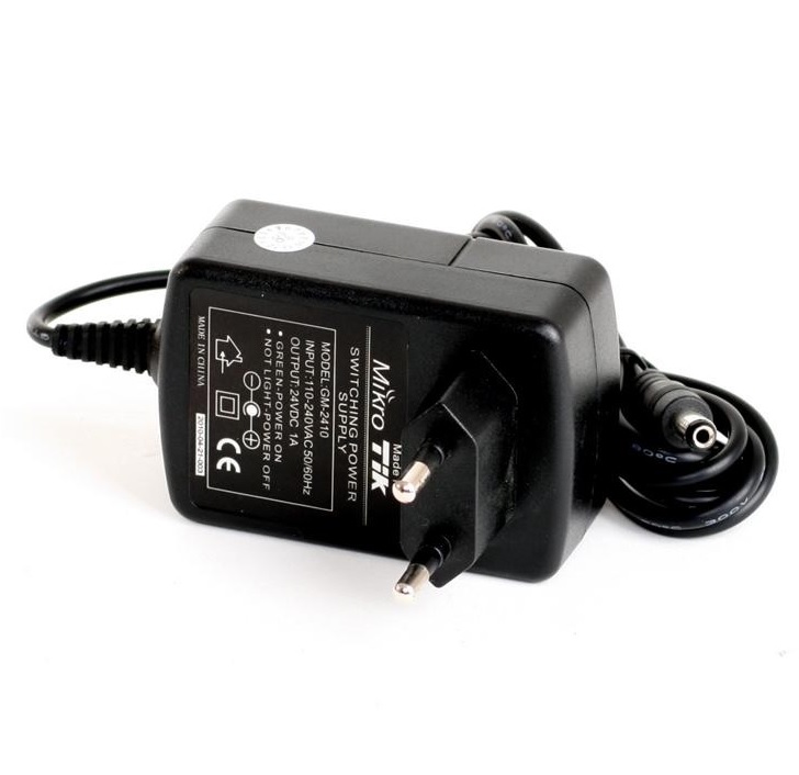 MikroTik OEM napájecí adaptér s přímou instalací do zásuvky se standardním 5.5 / 2.1mm konektorem určeným pro napájení například MikroTik zařízení se vstupním napětím 24V DC. Napájecí adaptér má maximální výkon 24W a max. výstupní proud je 1A.