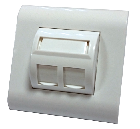Modul  pro 2x keystone 45x45mm oblý s  prachovou krytkou konektorů, popisnými štítky. Vhodné do podlahových krabic, parapetních žlabů, k rámečkům LE308, LE309