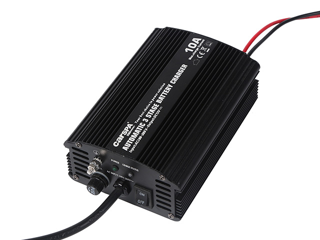 Nabíječka 12V/10A spínaná pro Pb aku, CARSPA ENC1210. Kvalitní a výkonná nabíječka olověných akumulátorů značky CARSPA s max. nabíjecím proudem 10A.