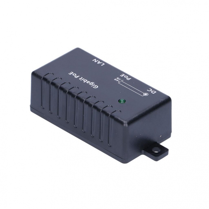 Univerzální pasivní Gigabit POE injektor pro vzdálené napájení aktivních prvků s integrovaným extraktorem po UTP kabeláži.