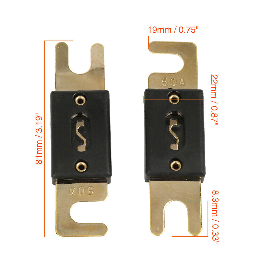 Pojistka plochá pod šroubky 50A. Použití například pro automobily, upravené vozy, čluny, audio a video systémy, solární a elektrické systémy a další Základní specifikace: Rozměr pojistky: Velikost: 80 x 22 x 9 mm Balení: 1 ks Proud (A): 50A Typ: