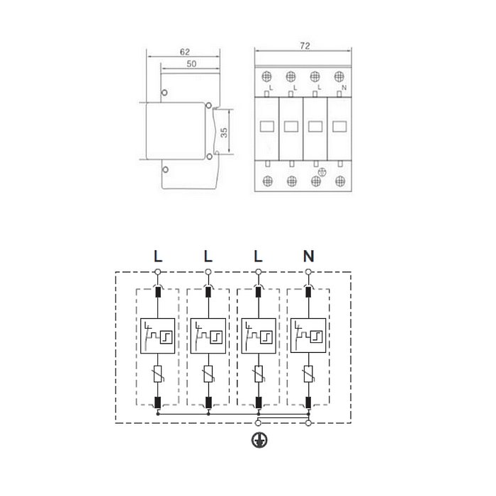 •  Snižuje přepětí a svádí na zem přepětí pocházející z obou typů přepětí - přímého i nepřímého. Současně poskytuje dvoustupňovou úroveň ochrany.