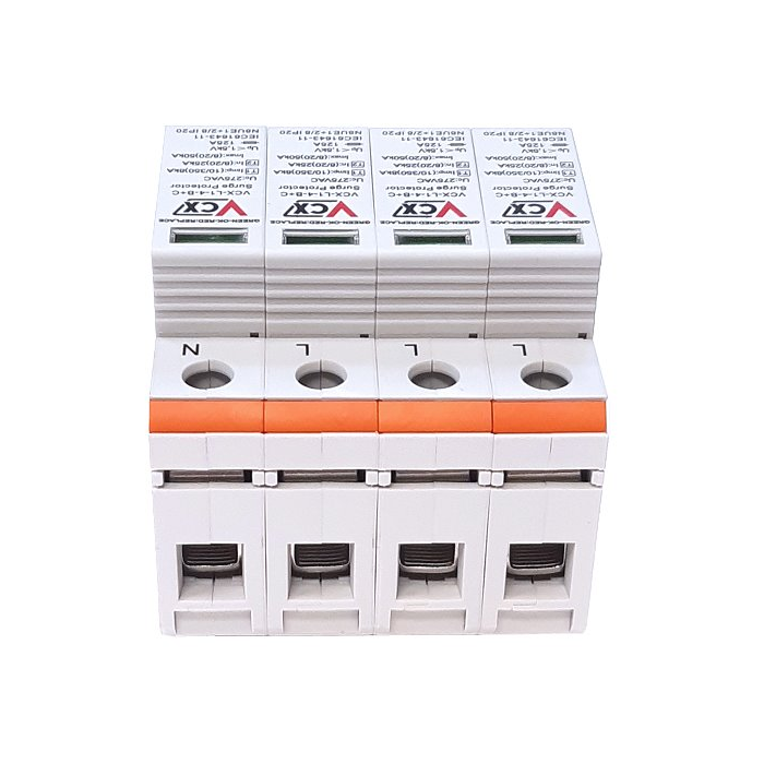 Současně poskytují dvoustupňovou úroveň ochrany. Použití modulárních přepěťových ochran VCX-L1-4-B+C 8kA třídy T1T2 nevyžaduje použití oddělovacích tlumivek. Poskytují účinnou ochranu počítačů, spotřební elektroniky/spotřebičů atd. Jsou vybaveny vizuálním indikátorem provozu (zelená - ochrana, červená - bez ochrany).