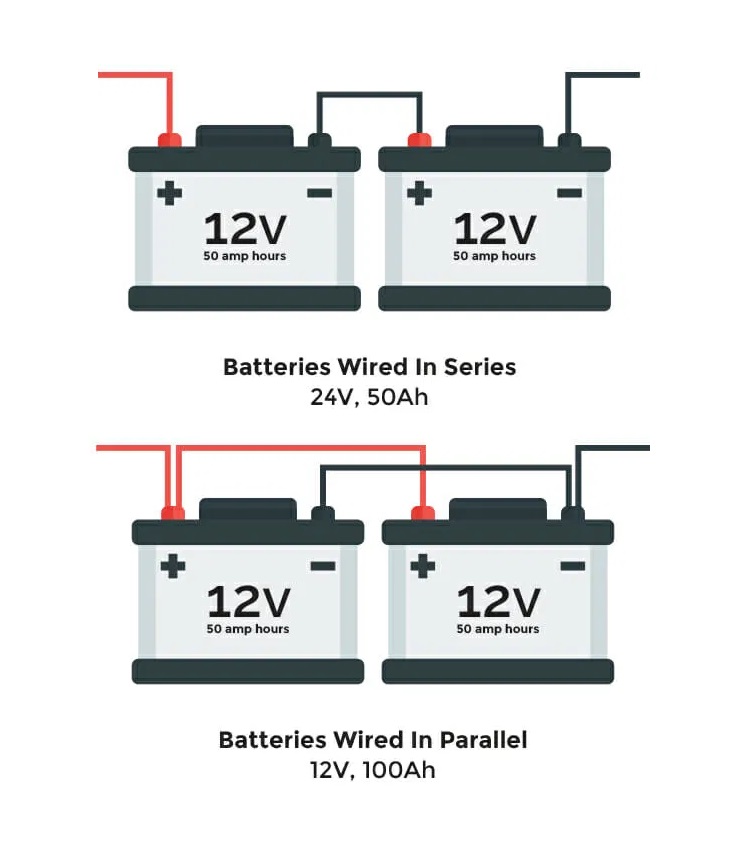 Propojovací kabely - 1x černý, 1x červený, zakončený vidličkou na obou stranách je ideální k propojování baterií, měničů napětí, atd...se závitem M8. Propojením více baterií můžete zvýšit výstupní napětí (sériové zapojení) nebo celkovou kapacitu (paralelní zapojení).