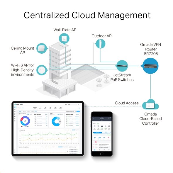 Profesionální, bezpečný a spolehlivý Gigabitový router s vlastním webovým managementem ale i možností centralizované správy pomocí Omada Software Defined Networking (SDN) a to odkudkoliv a kdykoliv.