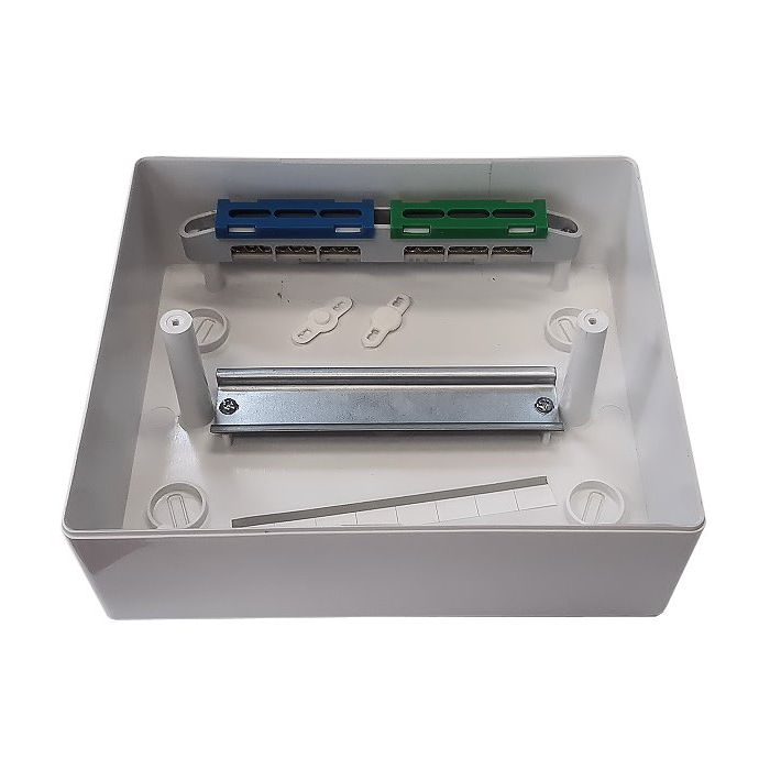 Je vybaven svorkovnicemi N+PE. Jako montážní prvek je v tomto rozváděči použit držák TH 35/7,5 (lišta), který umožňuje montáž miniaturních jističů, proudových chráničů a dalších elektrických zařízení.