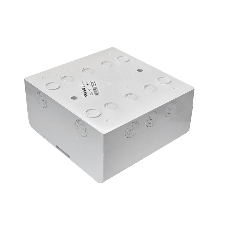 Kvalitní plastový nástěnný rozvaděč SRn-6/B (N+PE) IP40. Rozměry (D x Š x H): 198 x 192 x 95 mm, bílá dvířka. Unr: 230/400 V, Uni: 500 V, In: 100 A.