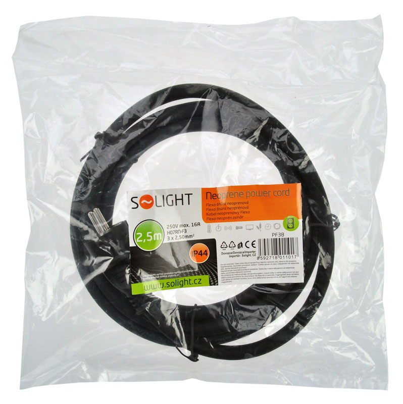 Solight flexošňůra PF38 s volným koncem 3x2,5mm 2,5m gumová H07RN-F3, černá