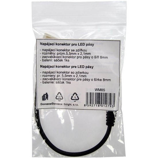 - napájecí konektor se zdířkou; - rozměry: prům.5,5mm x 2,1mm; - zacvakávací konektor pro pásy o šíři 8mm; - balení: sáček 1ks