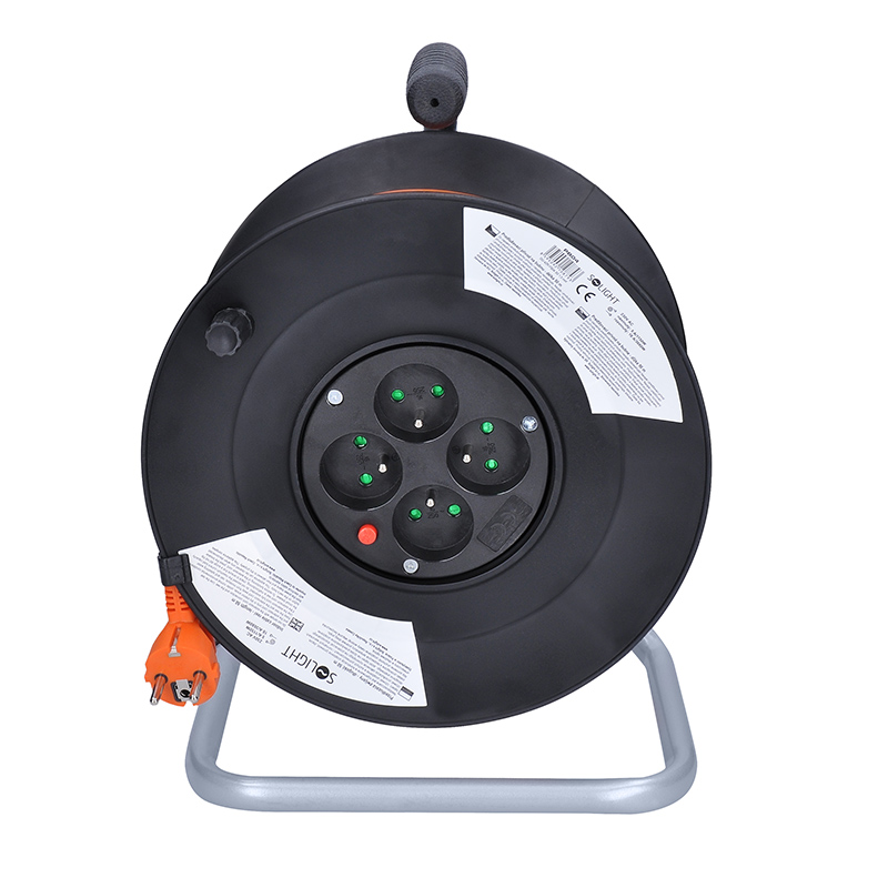 • Solight PB04 prodlužovací přívod na bubnu, 4 zásuvky, 50m, oranžový kabel, 3x 1,5mm2