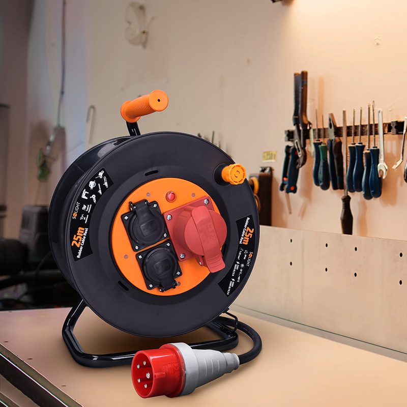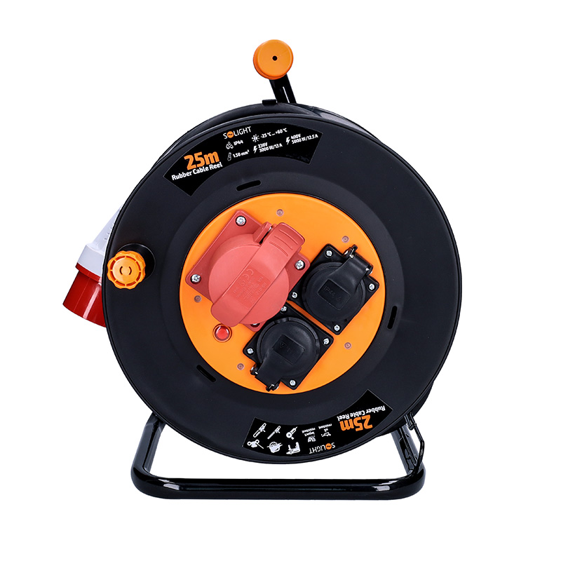• Solight PB40 prodlužovací přívod na bubnu, 3 zásuvky, 400V + 230V, 25m gumový kabel 5x1,5mm2, IP44