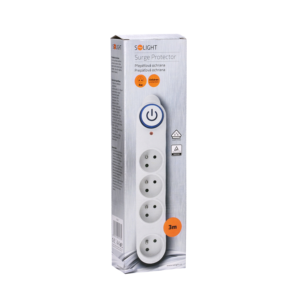 • Solight PO47 přepěťová ochrana, 150J, 4 zásuvky, 3m, bílá