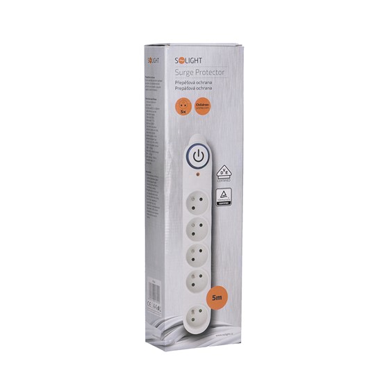 • Solight PO58 přepěťová ochrana, 150J, 5 zásuvek, 5m, bílá