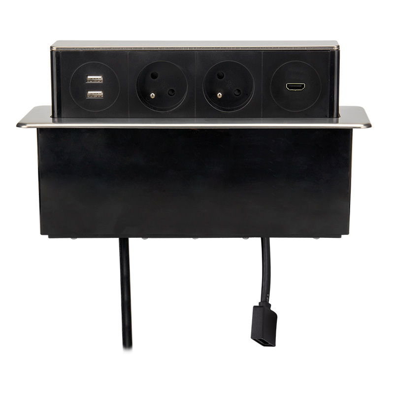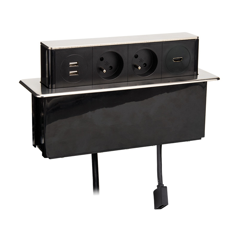 Solight PP126HDMI, USB výsuvný blok zásuvek, 2 zásuvky + HDMI + USB, nerez + plast, 3 x 1.5mm2, stříbrný