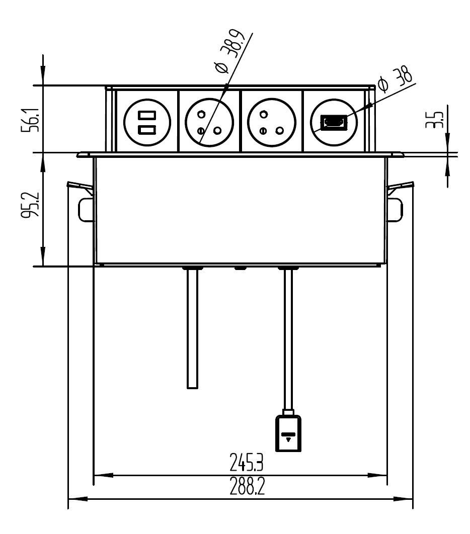 - rozměr montážního otvoru v desce stolu: max. 25,0 x 6,5cm
