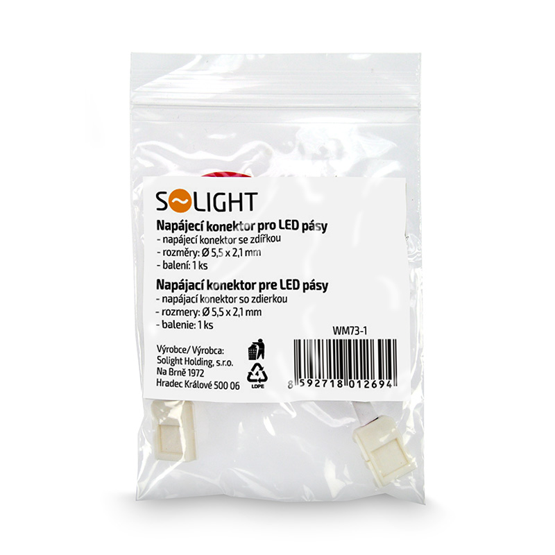 • Solight propojovací kabel pro LED pásy, 8mm zacvakávací konektor na obou stranách, 1ks, sáček