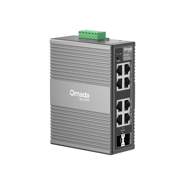 Průmyslový switch od značky TP-Link, 8× GLan, 2× SFP Combo, snadné začlenění do platformy Omada SDN, provozní teplota -40 až 75 °C, krytí IP40, možnost montáže na DIN/stěnu, VLAN, QoS, redundantní napájení.