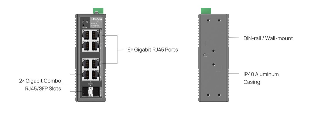 • Switch TP-Link IES208G průmyslový, 2x SFP combo, 6x GLan, DIN, Omada SDN