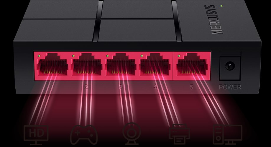 Gigabitové porty jsou 10 x rychlejší než běžné ethernetové porty 10 / 100 Mb / s. MS105G je plně kompatibilní s 4K Ultra HD televizory, počítači, tiskárnami, IP kamerami, herními konzolami a dalšími. Díky tomu je ideální pro použití v domácnostech, v kancelářích a v malých bytech.