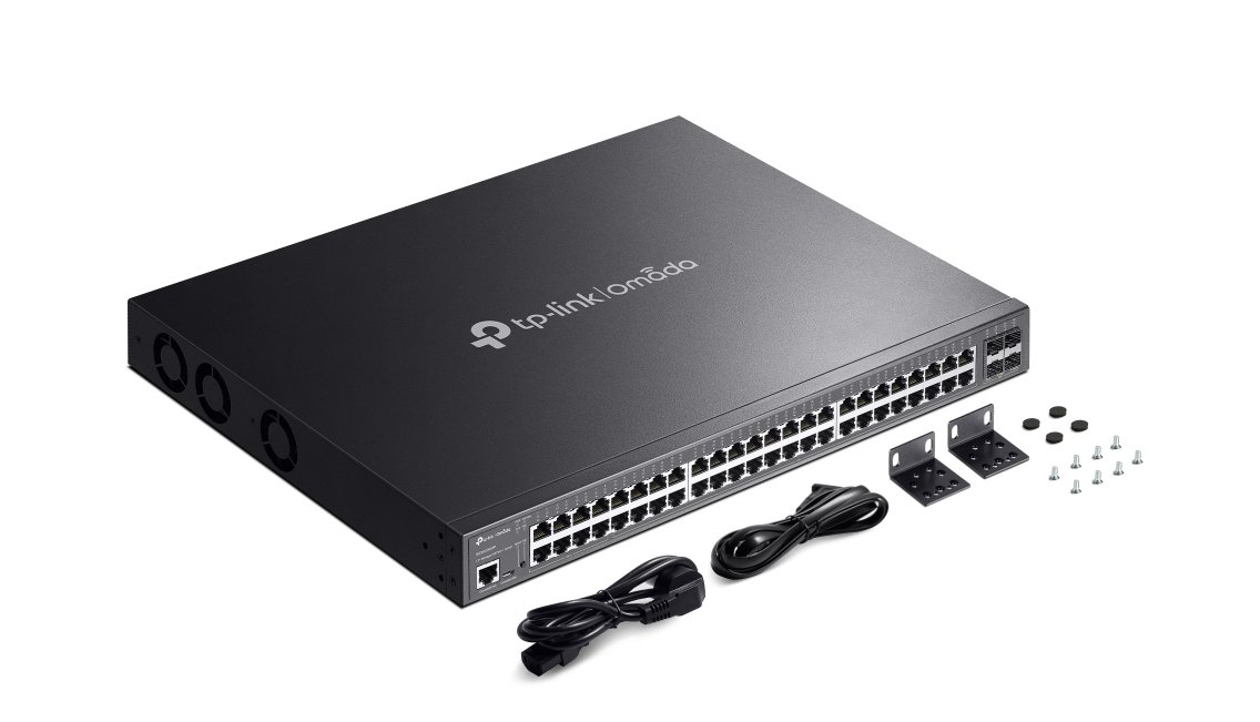 Spolehlivý switch, 3 ventilátory, 48x 10/100/1000 Mbps RJ45 Port, 4x 10G SFP+ slot, 1x RJ45 Console Port a 1x Micro-USB Console Port. Omada SDN pro centralizovanou správu.