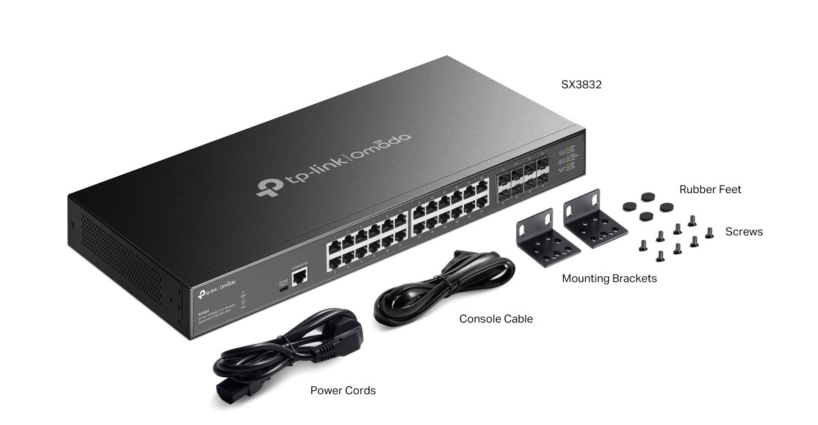 S řízeným switchem SX3832 od TP-Link získáte bleskurychlé 10G připojení, které využijete hlavně ve firmách a provozovnách. Tento plně řízený switch vám poskytne 24 portů 1/2,5/5/10 Gb/s RJ45 a 8 portů 10G SFP+. Těšit se můžete na přepínací kapacitu 640 Gbit/s. Odolné kovové pouzdro umožňuje montáž do racku.