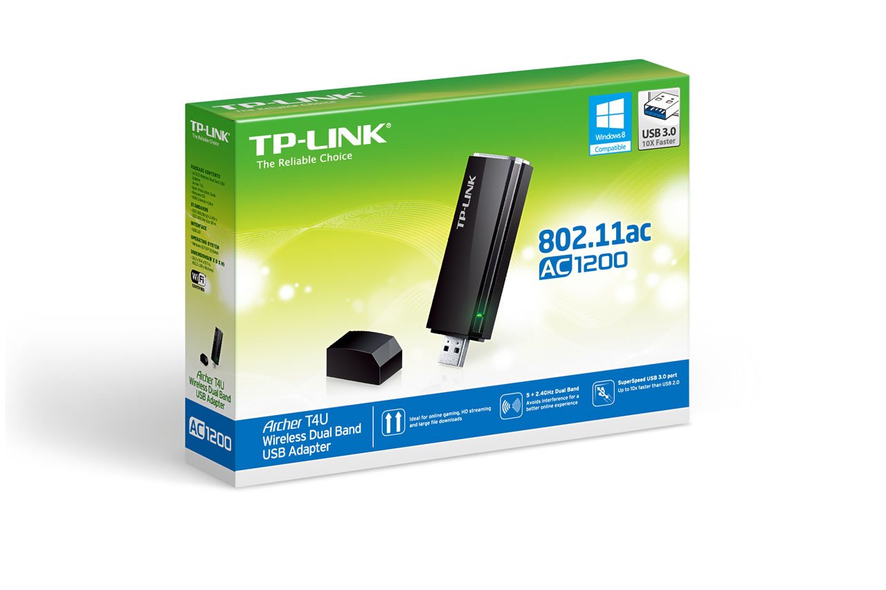TP-LINK Archer T4U je bezdrátový USB adaptér s duálním pásmem AC 1200 dávající uživatelům možnost křišťálově jasného připojení v pásmu 5 GHz nebo v starším pásmu 2,4 GHz. Mohou tak vylepšit možnosti bezdrátového připojení svého notebooku nebo počítače o pásmo 5 GHz, přičemž mají stále možnost využívat starší pásmo bezdrátové sítě 2,4 GHz.