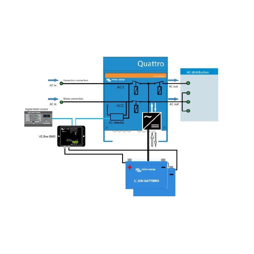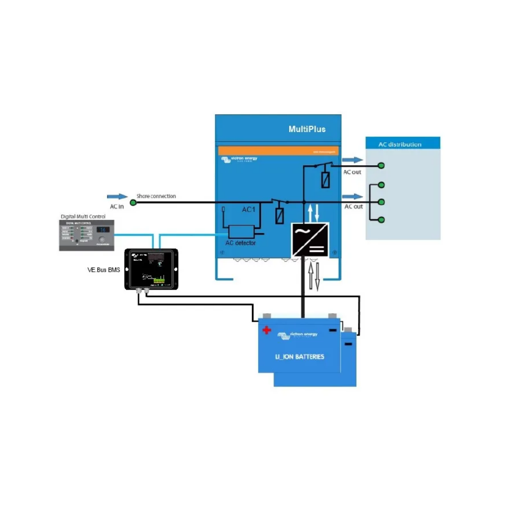 VE.Bus zařízení lze připojit k měničům/nabíječům typové řady MultiPlus a Quattro  a dále k měničům Phoenix disponující VE.Bus zdířkou na připojení konektor UTP kabelu RJ45.