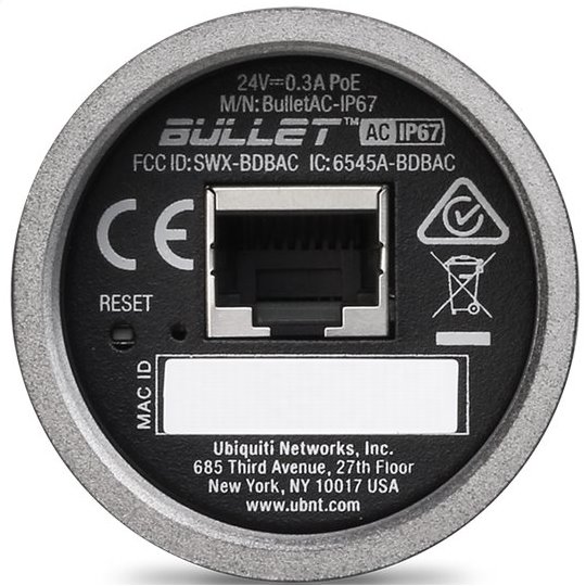 Jednotka je opatřena jedním Gbit ethernetovým portem, který dovoluje využít všech možností normy 802.11ac. Napájení probíhá přes 24V/0,5A DC POE adaptér, který stejně jako u předešlých bulletů není součástí balení.