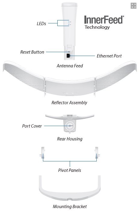 LiteBeam 5AC-LR kombinuje proprietární hardwarové a softwarové technologie do cenově dostupného zařízení. Mezi výhody patří InnerFeed technologie, airMAX TDMA protokol, vylepšený držák a vestavěná vodováha umožňující velmi rychlé a správné nasazení a také velmi kompaktní rozměry pro úsporu nákladů při přepravě.