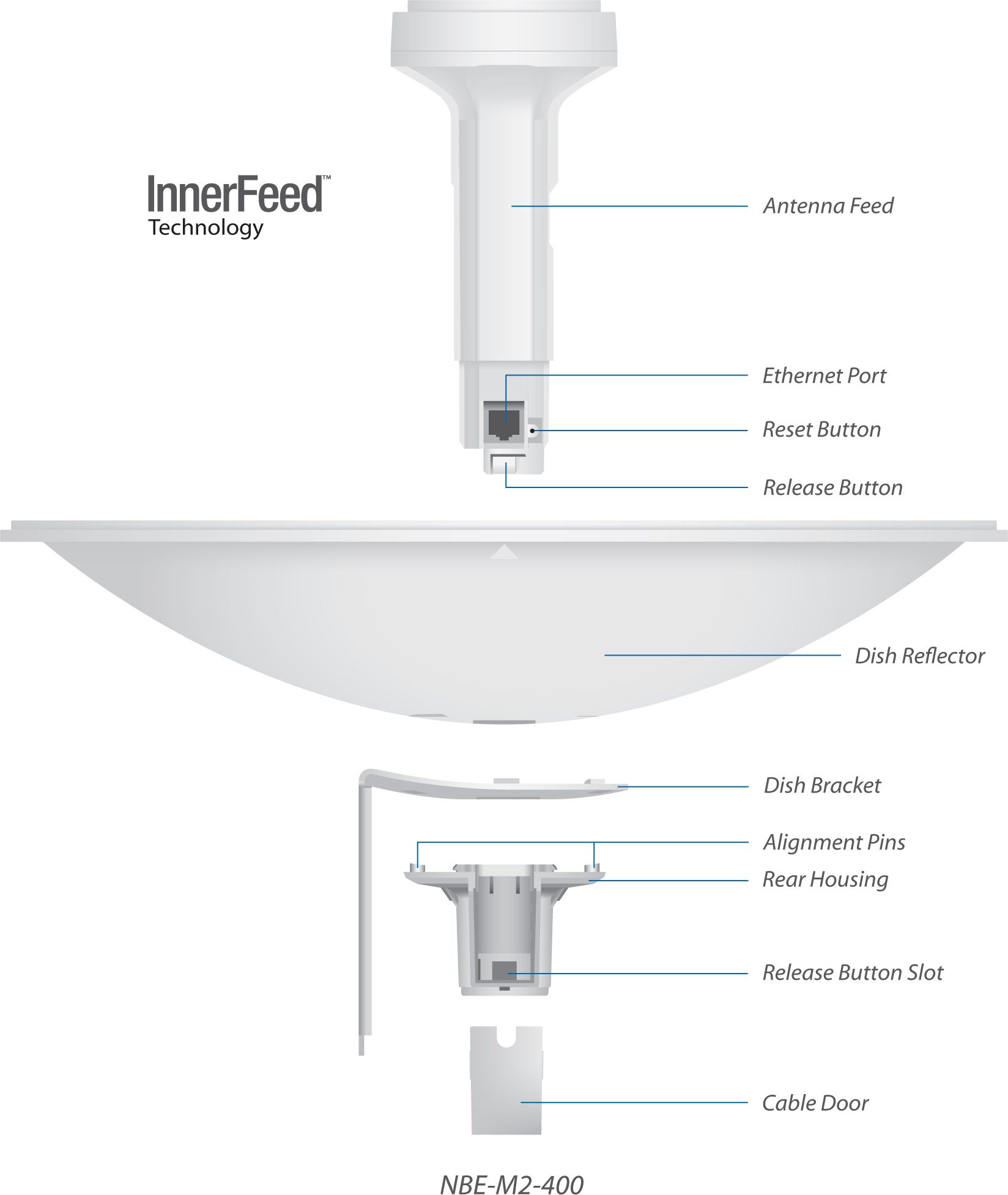 PowerBeam vychází z dřívější velmi úspěšné řady produktů NanoBridge. Nově obsahuje výkonější hardware a chytřejší konstrukci. Konstrukce byla maximálně zjednodušena, instalace v terénu je nyní rychlejší a pohodlnější, pro zajímavost bych zmínil tlačítko pro uvolnění hlavní jednotky (zářiče) což byl problém u starší generace. Uvnitř NanoBeamu se nachází výkonný MIPS procesor Atheros 74KC s frekvencí 560MHz, kterému sekunduje 64MB operační paměti typu DDR2 a 8MB Flash paměť. Síťový port podporuje 10/100 Ethernet a lze po něm jednotku napájet pasivním PoE 24V/0,5A (aktivní PoE dle 802.3af není podporováno). Teoretická maximální propustnost jednotky je 300Mbit (MCS15, 802.11n, 2x2MIMO, při šířce kanálu 40MHz).