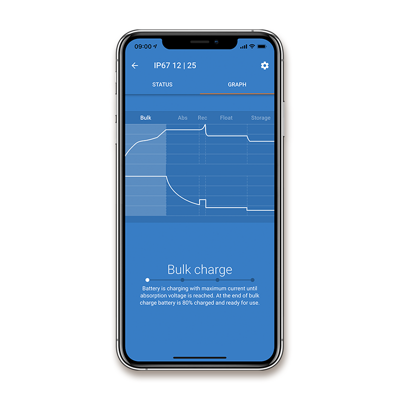 Victron Energy Nabíječka baterií BlueSmart 12V/13A IP67, vodotěsná. Automatické 5-fázové nabíjení. Nabíječka je vybavena mikroprocesorem řízeným "adaptivním" nabíjením baterií. Funkce "adaptivní" - automaticky optimalizuje nabíjecí proces v závislosti na způsobu používání baterie. Nabíječka je vhodná i pro nabíjení LiFePO4 baterií.