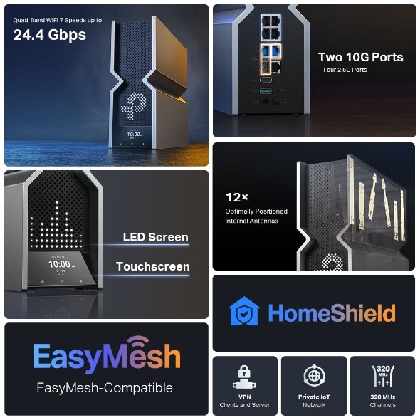 • WiFi router TP-Link Archer BE900 BE24000, WiFi 7, 1x 10GWAN, 4x 2.5GLAN, 1x 10GLAN/SFP+, USB, 2,4/5/6GHz