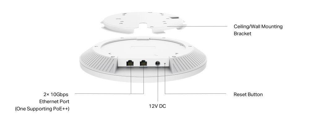 WiFi router TP-Link EAP783 stropní AP WiFi 7, 2x 10GLan, 2,4/5/6 GHz, BE19000, bez PoE adaptéru, Omada SDN