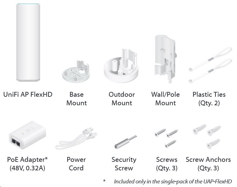 Vhodný pro vnitřní i venkovní použití. Bezproblémová integrace a správa pomocí síťového řešení UniFi. Součástí balení jsou držáky pro montáž na zeď, sloup a stůl.