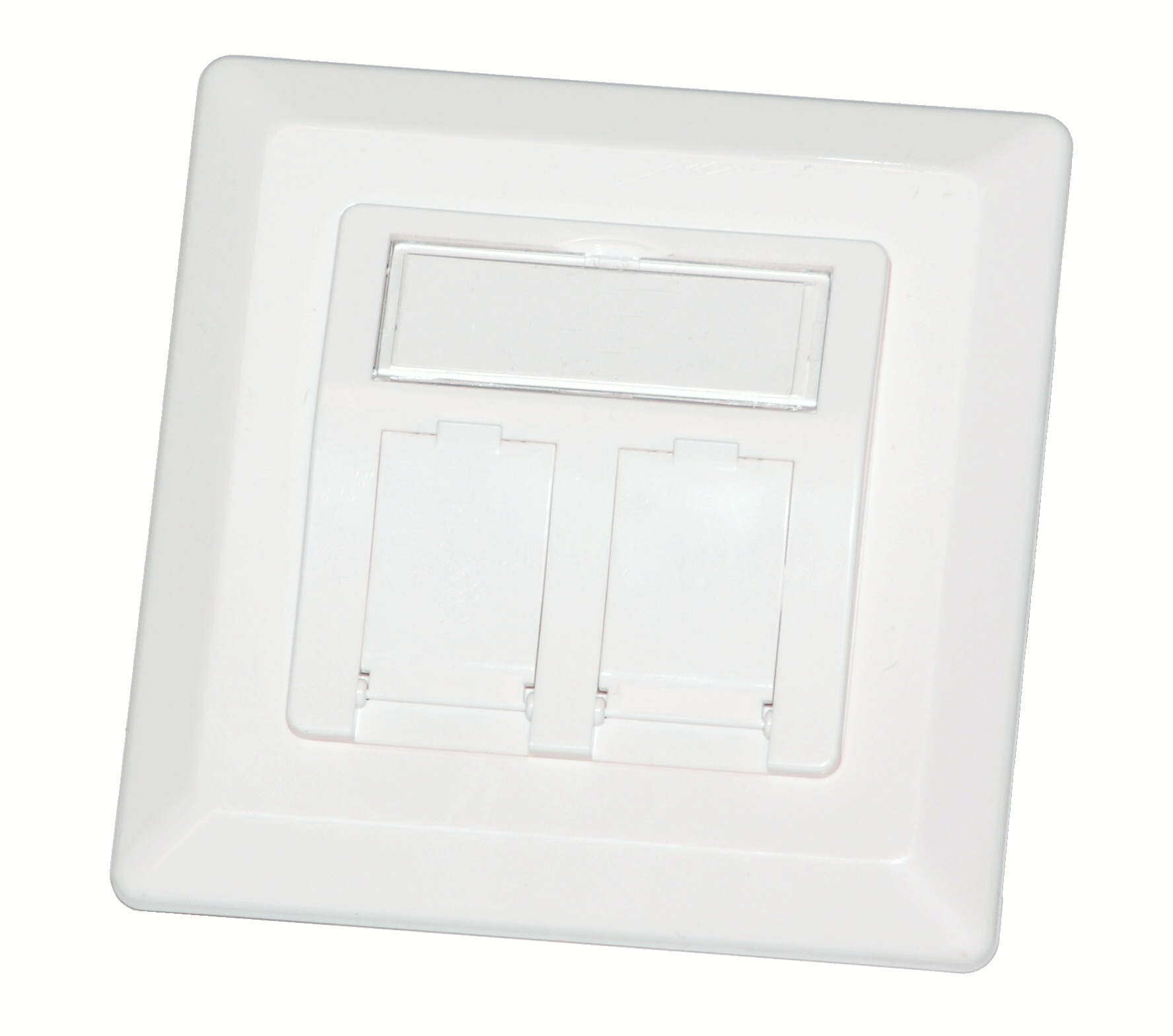 Zásuvka LEXI-NET pro 2x keystone, neosazená, úhlová s výklopnými prachovkami, kovové šasi
